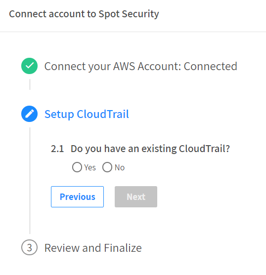 1. If you have a CloudTrail account, choose Yes.